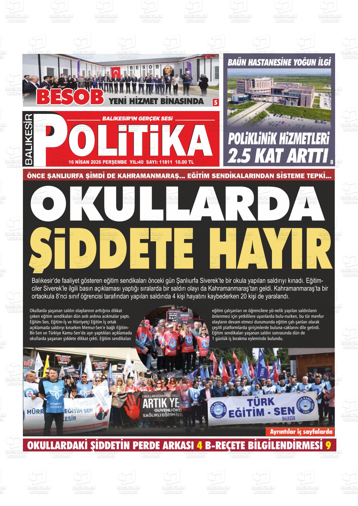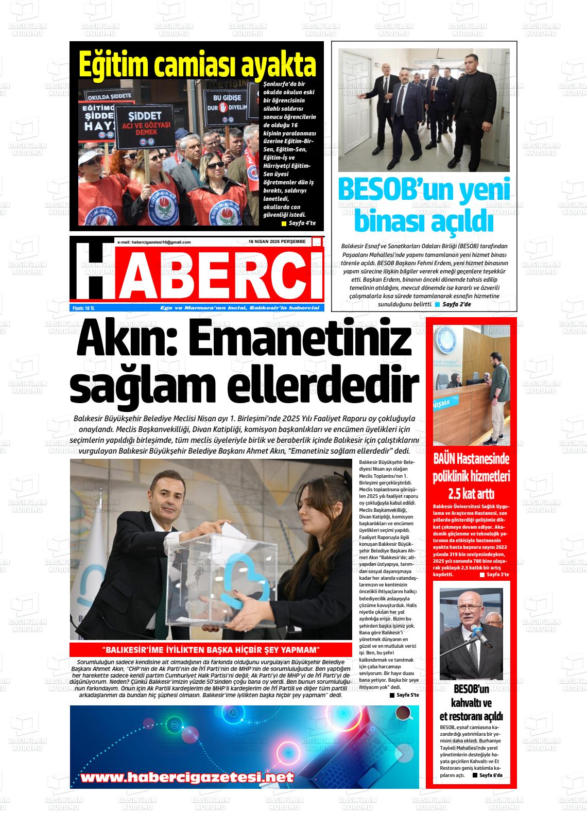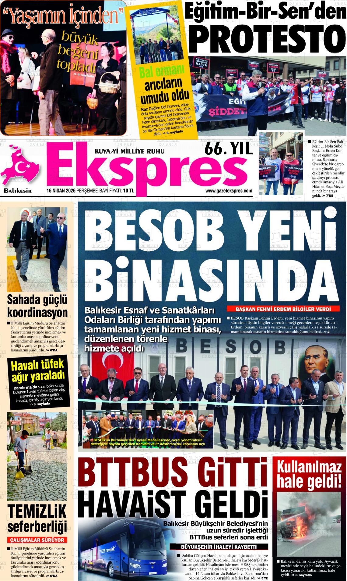 Balıkesİr Yerel Gazeteleri 17 Nisan 2026, Cuma Günü Manşeti