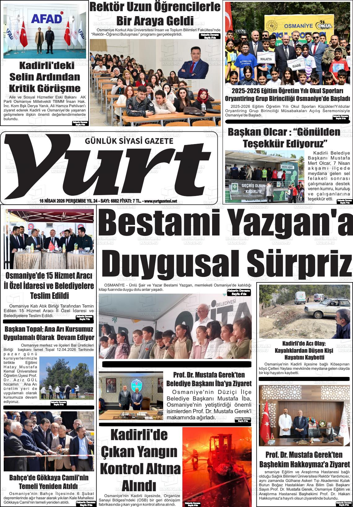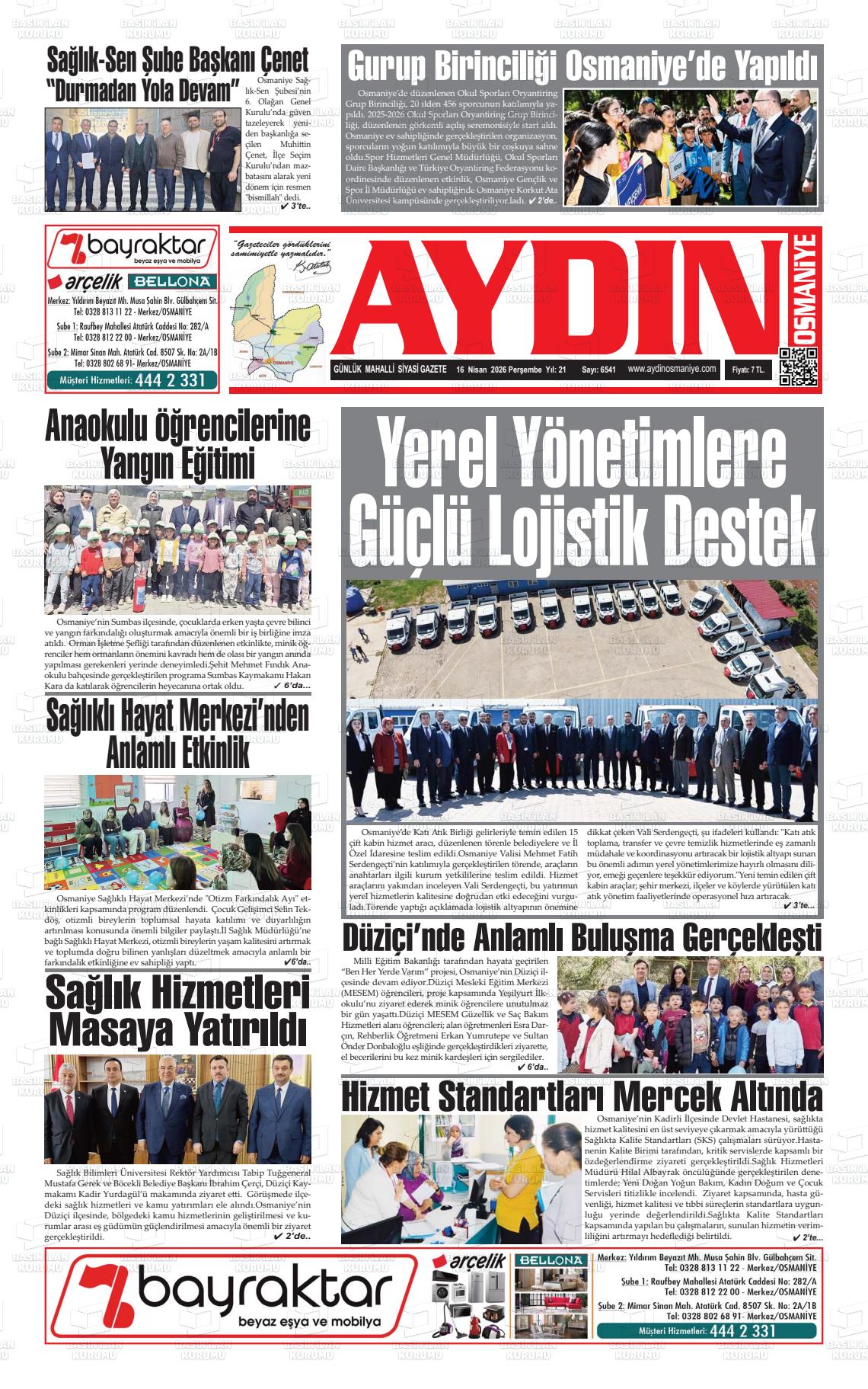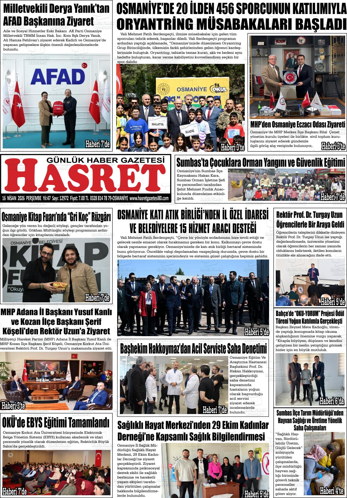 Osmanİye Yerel Gazeteleri 16 Nisan 2026, Perşembe Günü Manşeti
